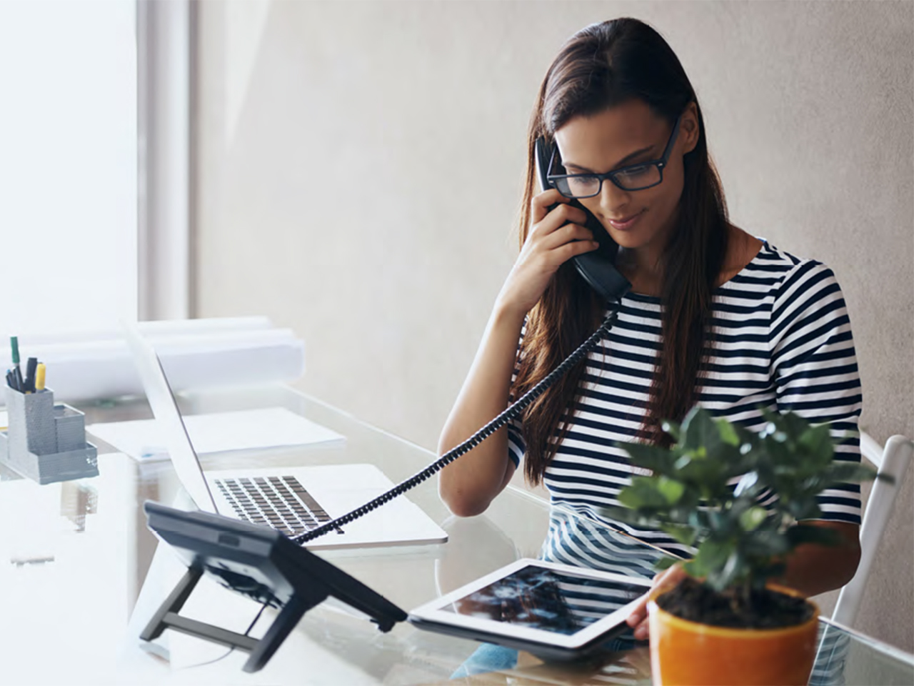 C’est ensuite qu’un PC est branché sur le téléphone -technologie IP oblige- d’où l’utilisation d’une seule prise pour ces deux équipements.